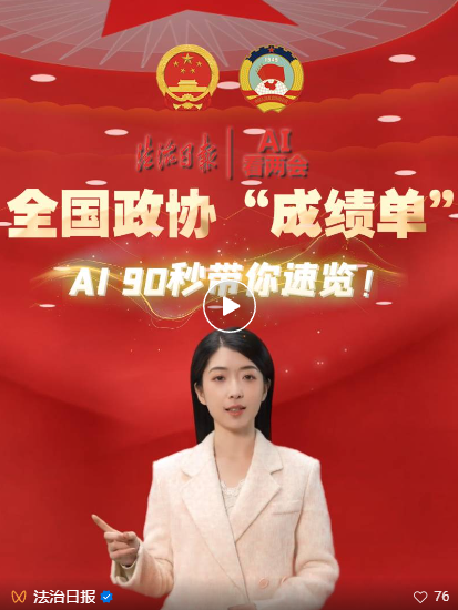 图生视频,展现一条“代表实况声”的“降生”。由“深艾”做为数字人从播,来表达年轻人对全国的关心。工做演讲初次提出开展“人工智能+”步履。解锁“AI”意满满的履职长卷》以创意H5的体例讲述委员履职故事,由AI“法小融”收集网友热议话题,磅礴旧事推出“AI速报”“AI数读”“AI问大咖”等智媒产物,鞭策亚洲文化深度交换——专访泰国代表团团长苏披实·萨迈希托